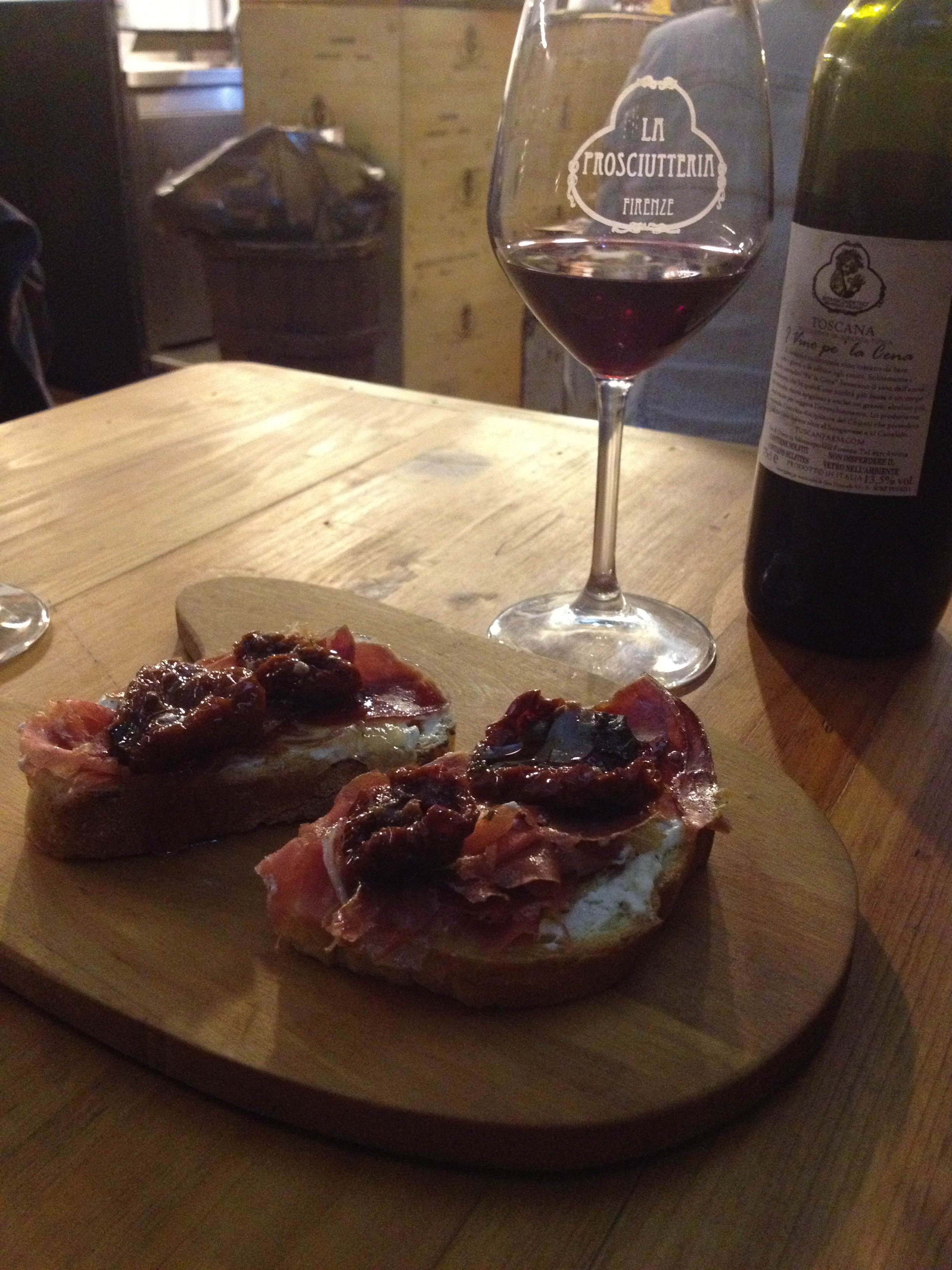 5. La Proscuiterria – Unfortunately, I couldn’t find a website, so the name is linked to its (excellently reviewed) trip advisor page. It’s another hole in the wall – seemingly attended mainly by Florentine natives and Italian tourists. When you order, you’re essentially ordering sandwiches or platters of meat and cheese. You pay for wine based on how much of a bottle you consume, and the walls are lined with locally made pastas, sauces, and drinks. We had a delicious lunch on our way out of town, and still bought two bags full of peppers, pesto and pasta. Overall: inexpensive, delicious, non-touristy and a great time.